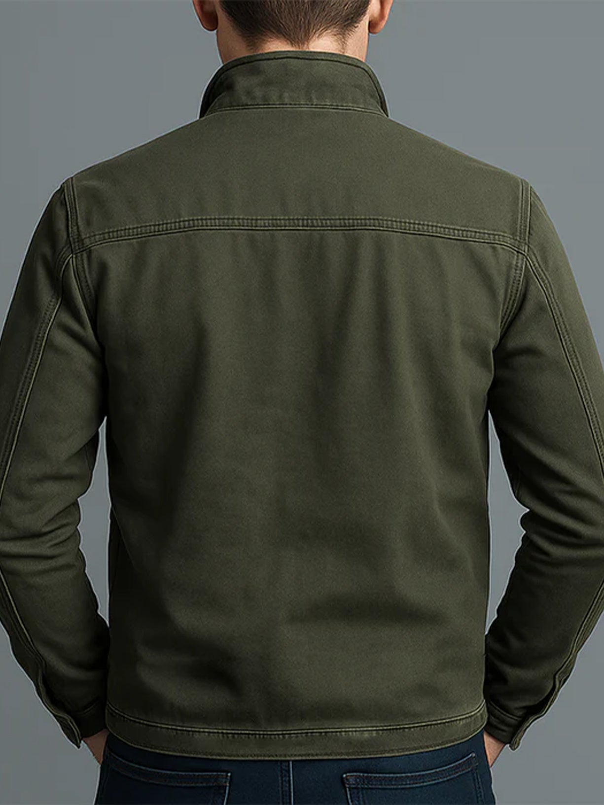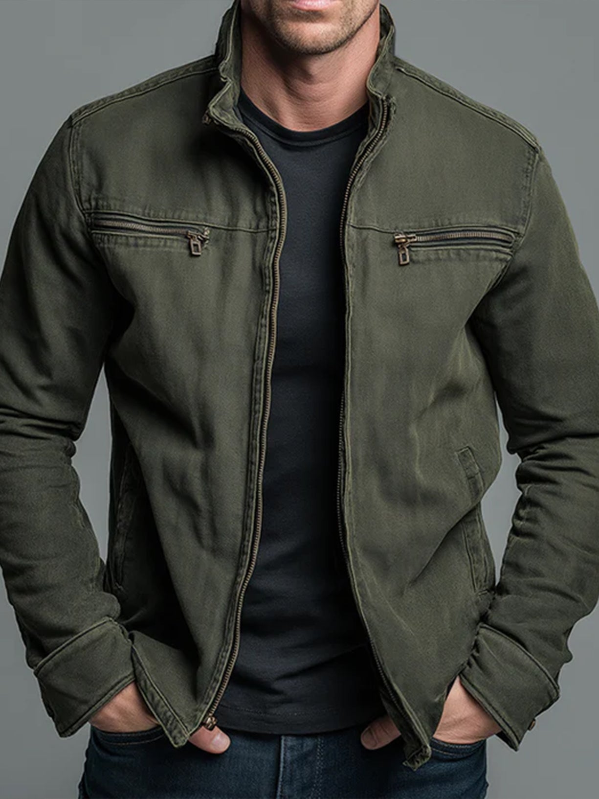 The Men's Vintage Casual Cotton Washed Zipper Lapel Jacket is a stylish